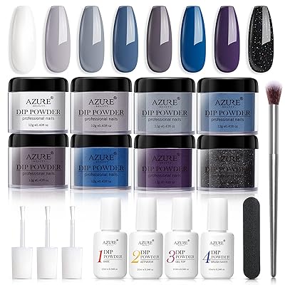 Buy Dip Powder Nail Kit Starter Azurebeauty 8 Colors Nude Blue Gray White Glitter Black Acrylic Dipping Powder Nail Set System Essential Kit For French Nail Art Set Manicure Salon Diy No