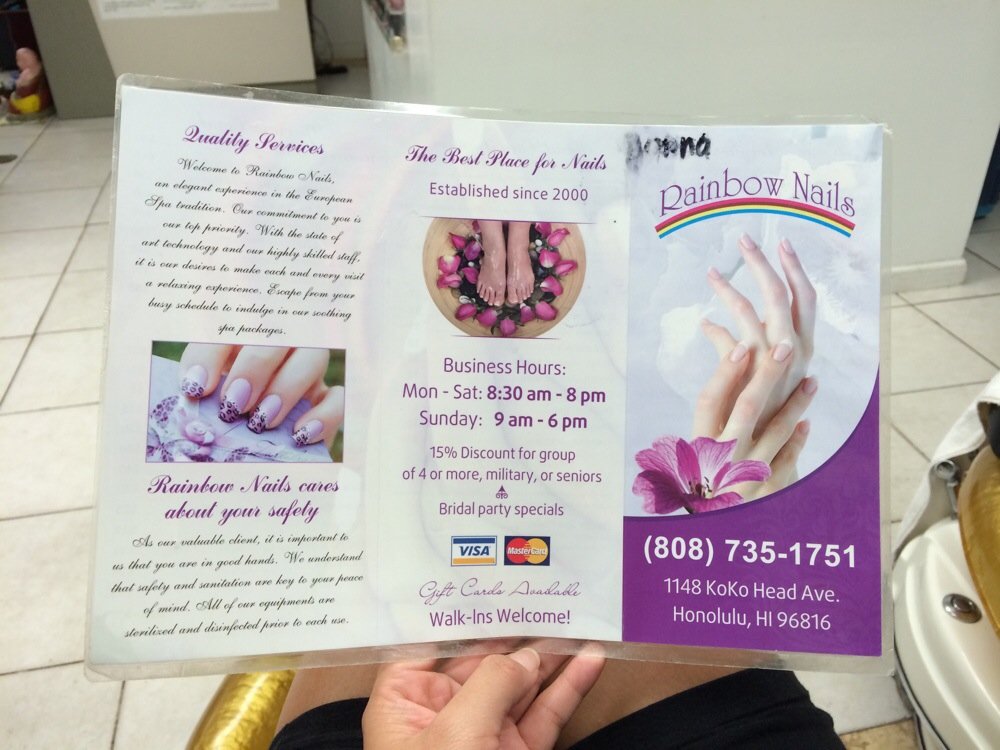 AA Nails Salon Kaimuki. Coming from the Bay Area where nail designs are. Rainbow nails has updated their hours and services.