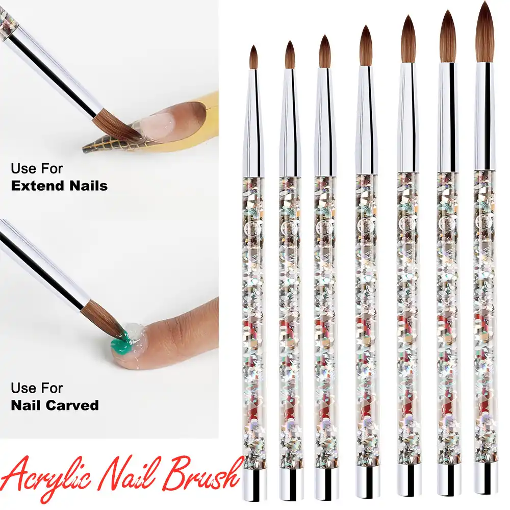7 Sizes Acrylic Nail Brush For Acrylic Powder 100 Nylon Manicure Acrylic Nails Round Nail Art Brush With Liquid Glitter Handle Nail Brushes Aliexpress